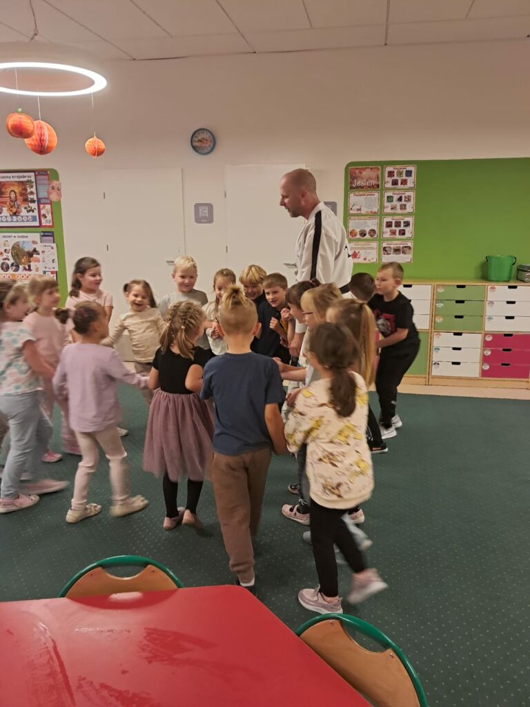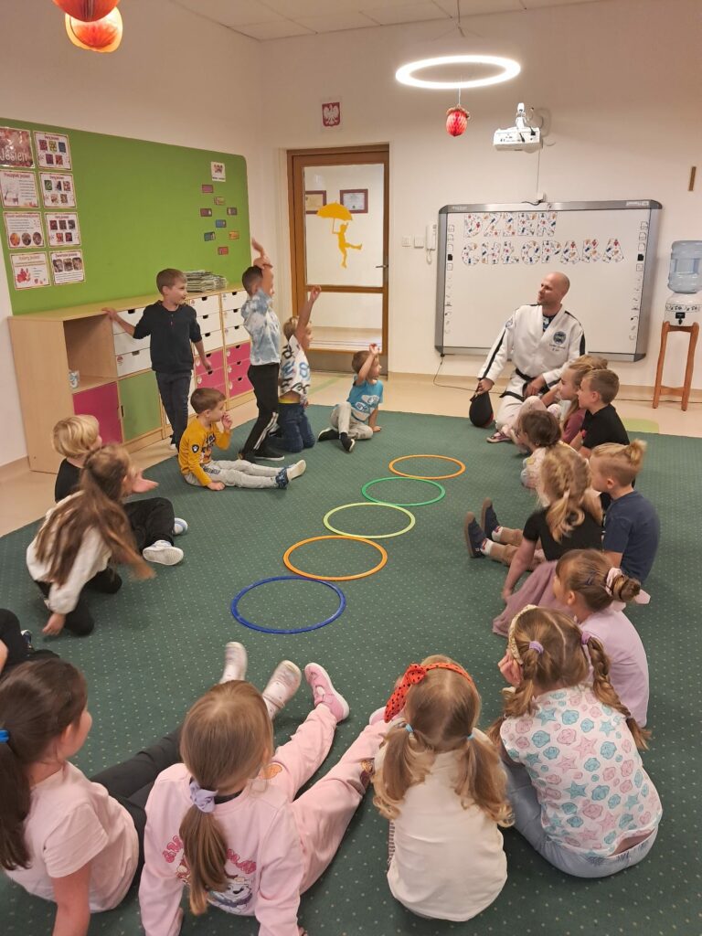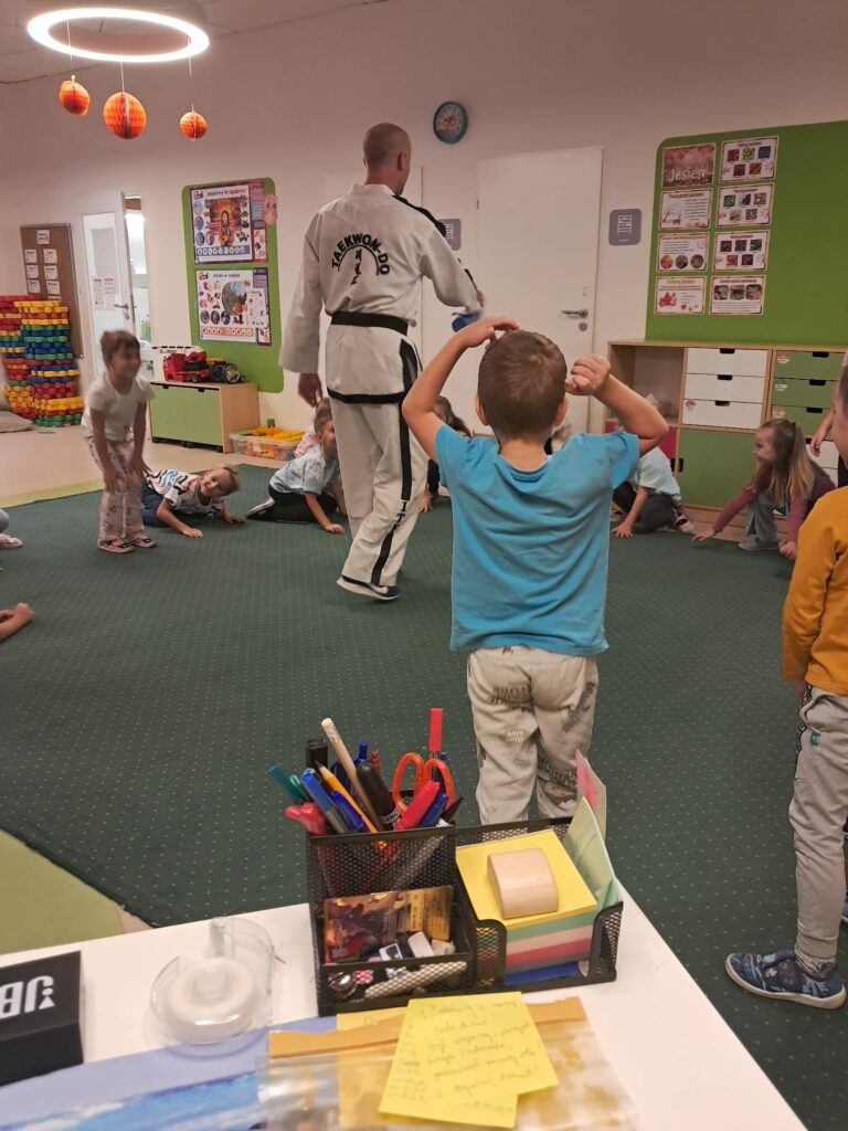 Z okazji Dnia Chłopca, który obchodziliśmy 30 września 2025 r., nasze przedszkolaki odwiedził wyjątkowy gość — trener taekwondo ze Sportowy Klub Taekwon-do Silla.
