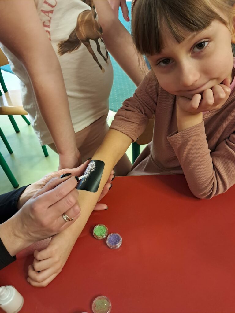 Na wszystkich czekała także dodatkowa atrakcja – brokatowe tatuaże, które sprawiły dzieciom wiele radości i wywołały mnóstwo uśmiechów 🤩
