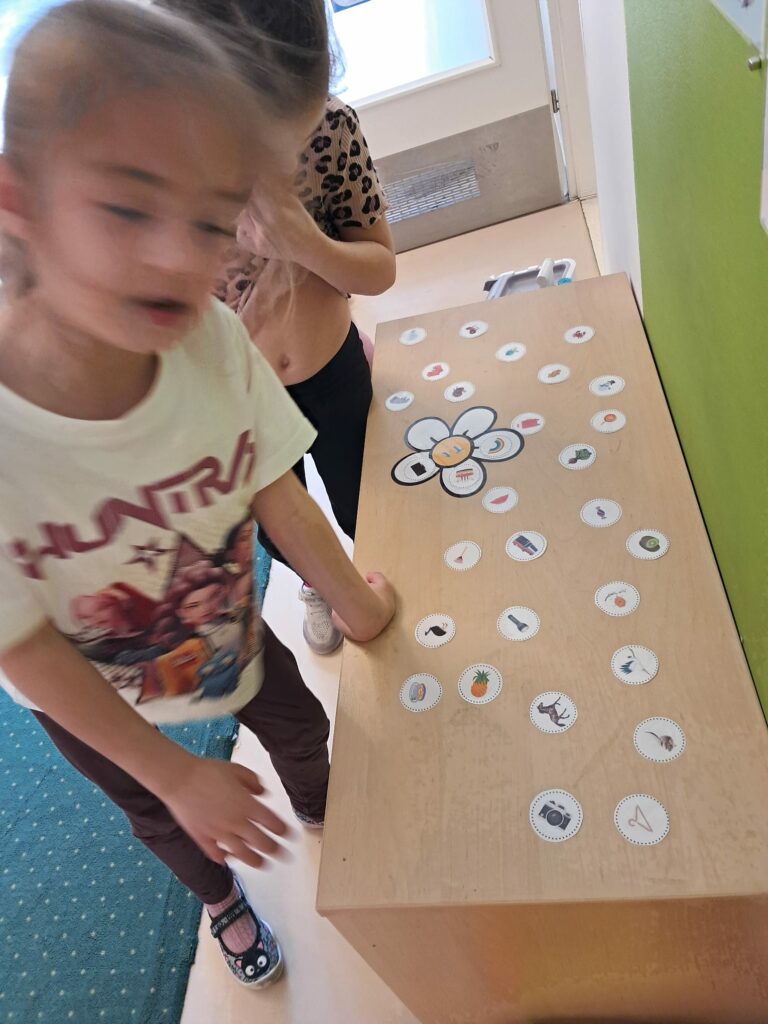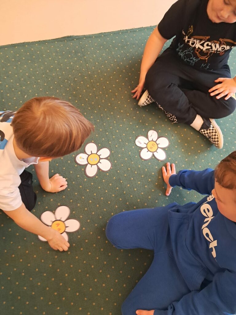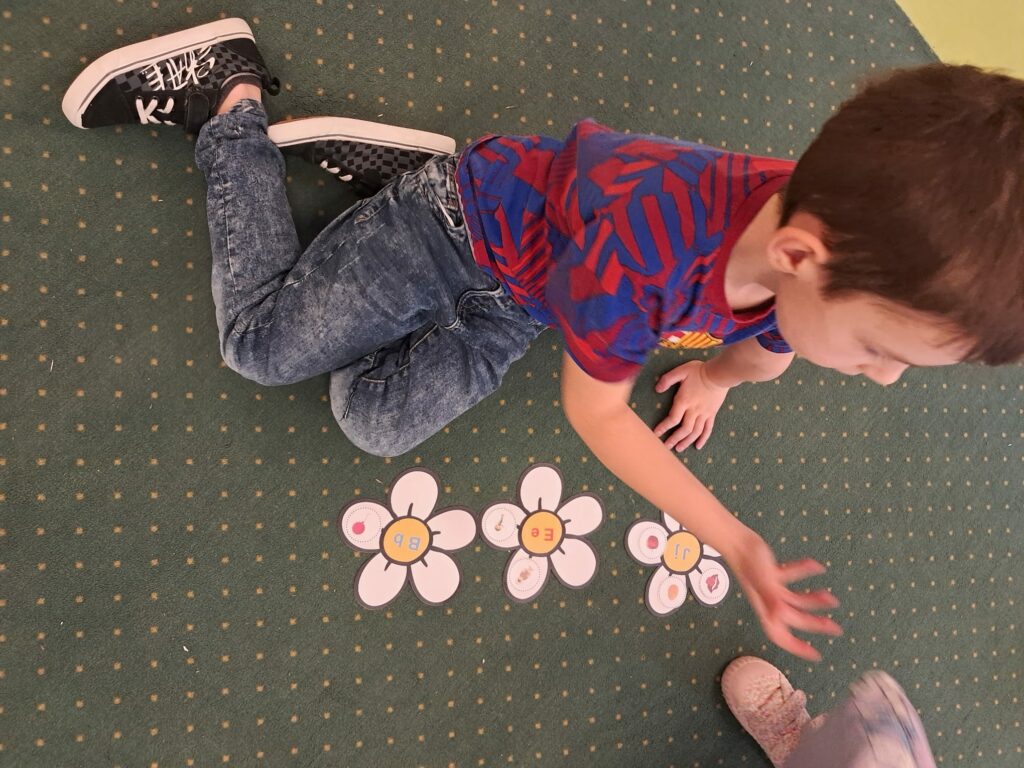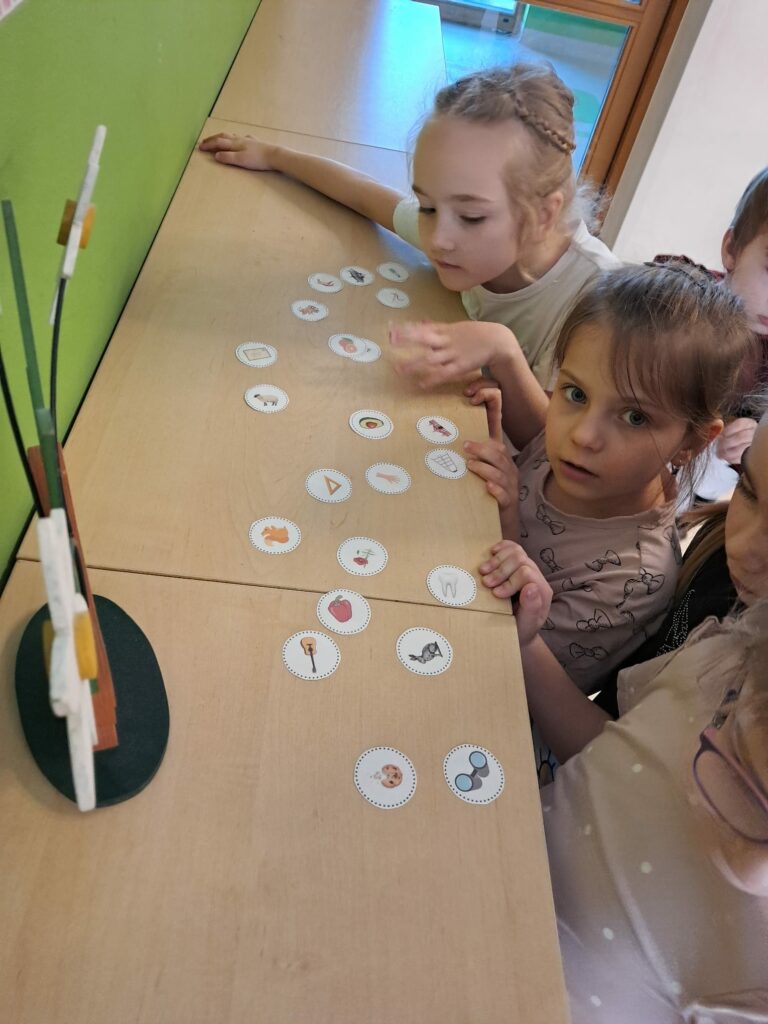 Ich zadaniem było dopasowanie obrazków do odpowiednich liter poprzez wyszukiwanie słów rozpoczynających się daną głoską. Zabawa pozwoliła utrwalić znajomość poznanych liter, rozwijała słownictwo oraz umiejętność analizy słuchowej.