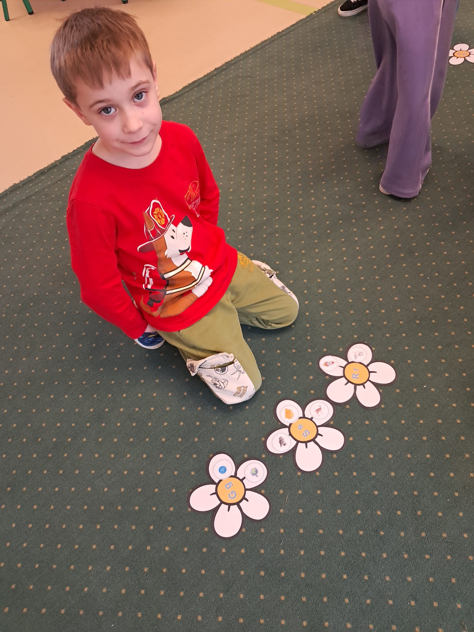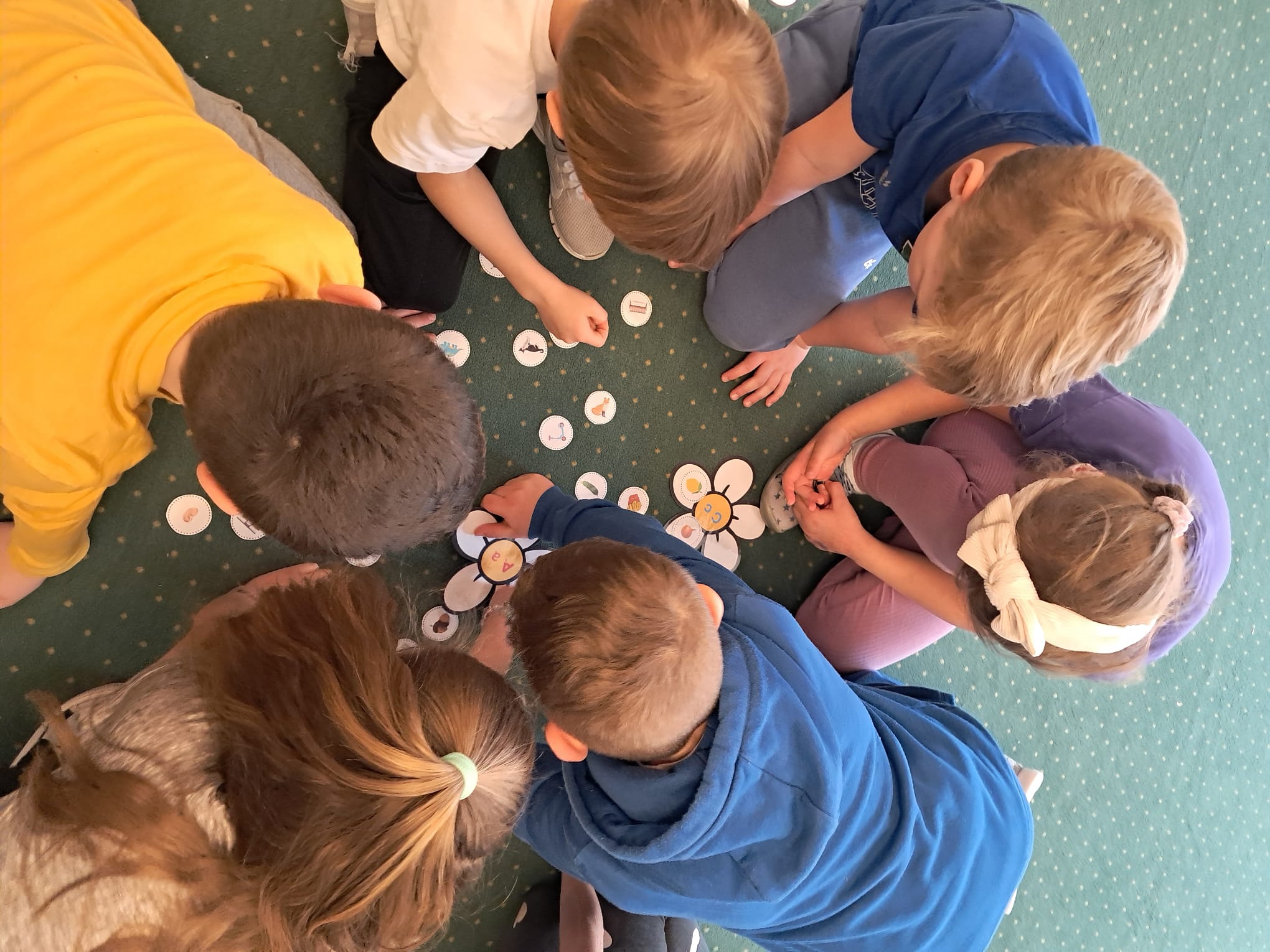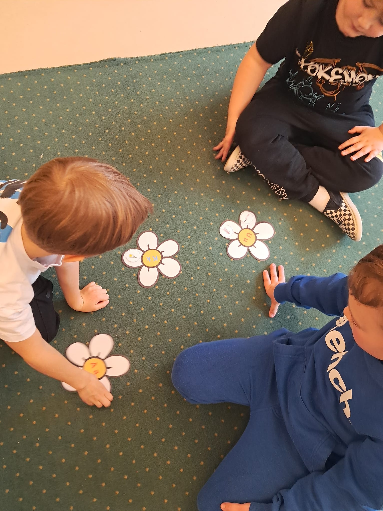 W ramach zajęć dodatkowych realizowanych w programie innowacji pedagogicznej „Zabawa w czytanie” dzieci pracowały z „kwiatowymi układankami literowymi”.