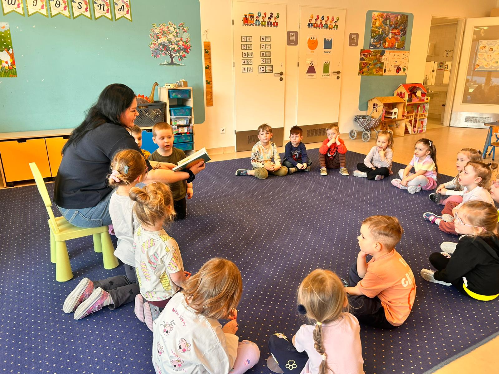 Odwiedziny mamy Tymona 27 marca odwiedziła nas Pani Marianna – mama Tymona, która przeczytała dzieciom bajkę o emocjach .