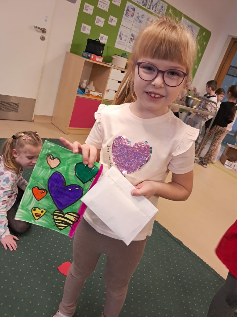 Dzieci rozmawiały o tym, czym są Walentynki i kogo kochają. Zastanawiały się także, co oznacza „kochać” – kogoś, coś, kochać siebie.