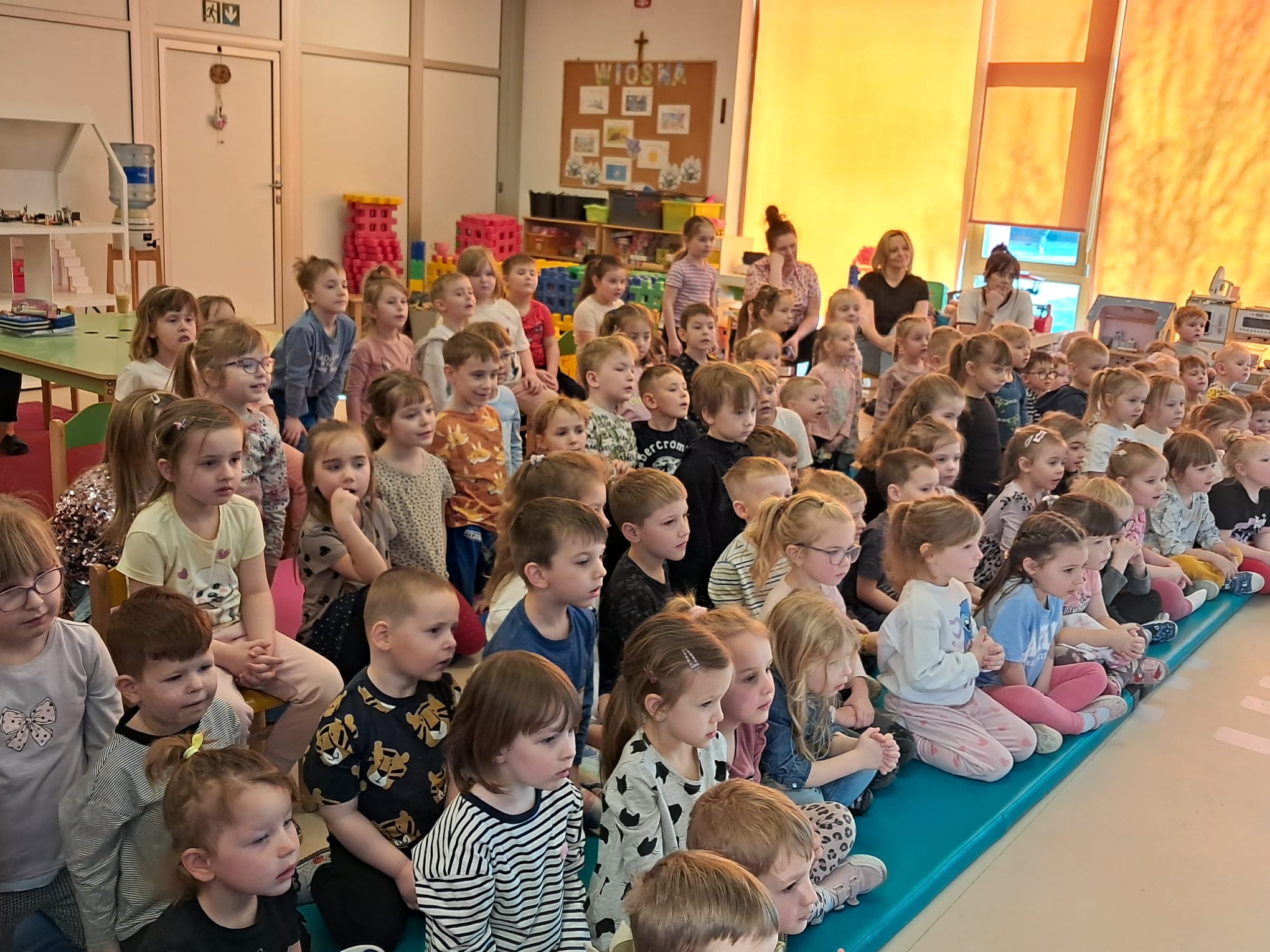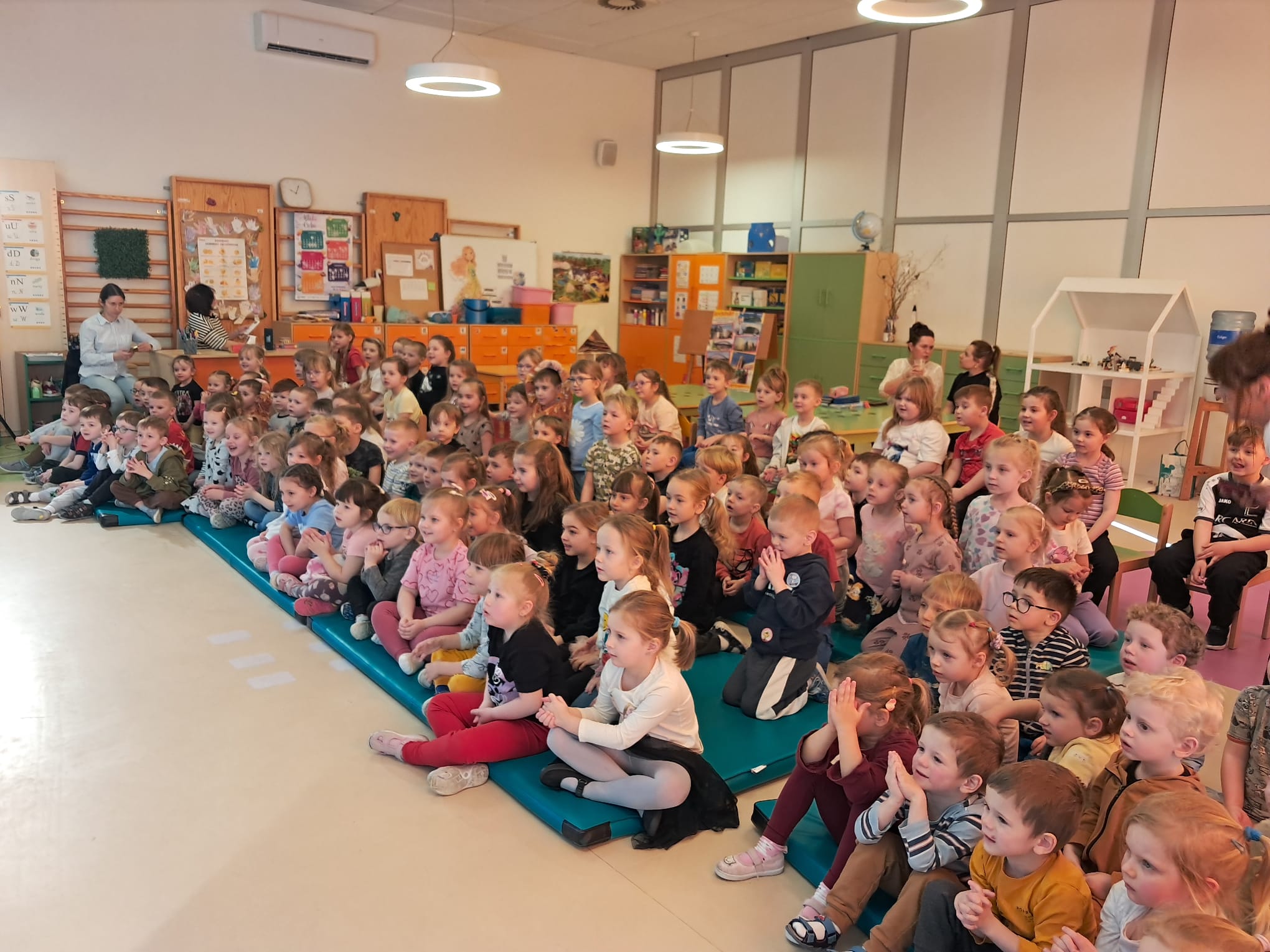 W niezwykle ciekawy, wesoły i pełen energii sposób przypomniał dzieciom, czym jest Wielkanoc. Podczas spotkania przedszkolaki przypomniały sobie o najważniejszych polskich tradycjach i zwyczajach wielkanocnych – dowiedziały się, co wkładamy do koszyczka wielkanocnego, dlaczego dzielimy się jajkiem oraz na czym polega śmigus-dyngus. 🐣🥚💦